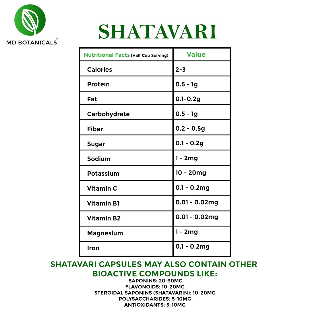 Shatavari is believed to support immune health and promote overall well-being. It contains antioxidants that help neutralize harmful free radicals in the body, reducing oxidative stress and supporting cellular health.